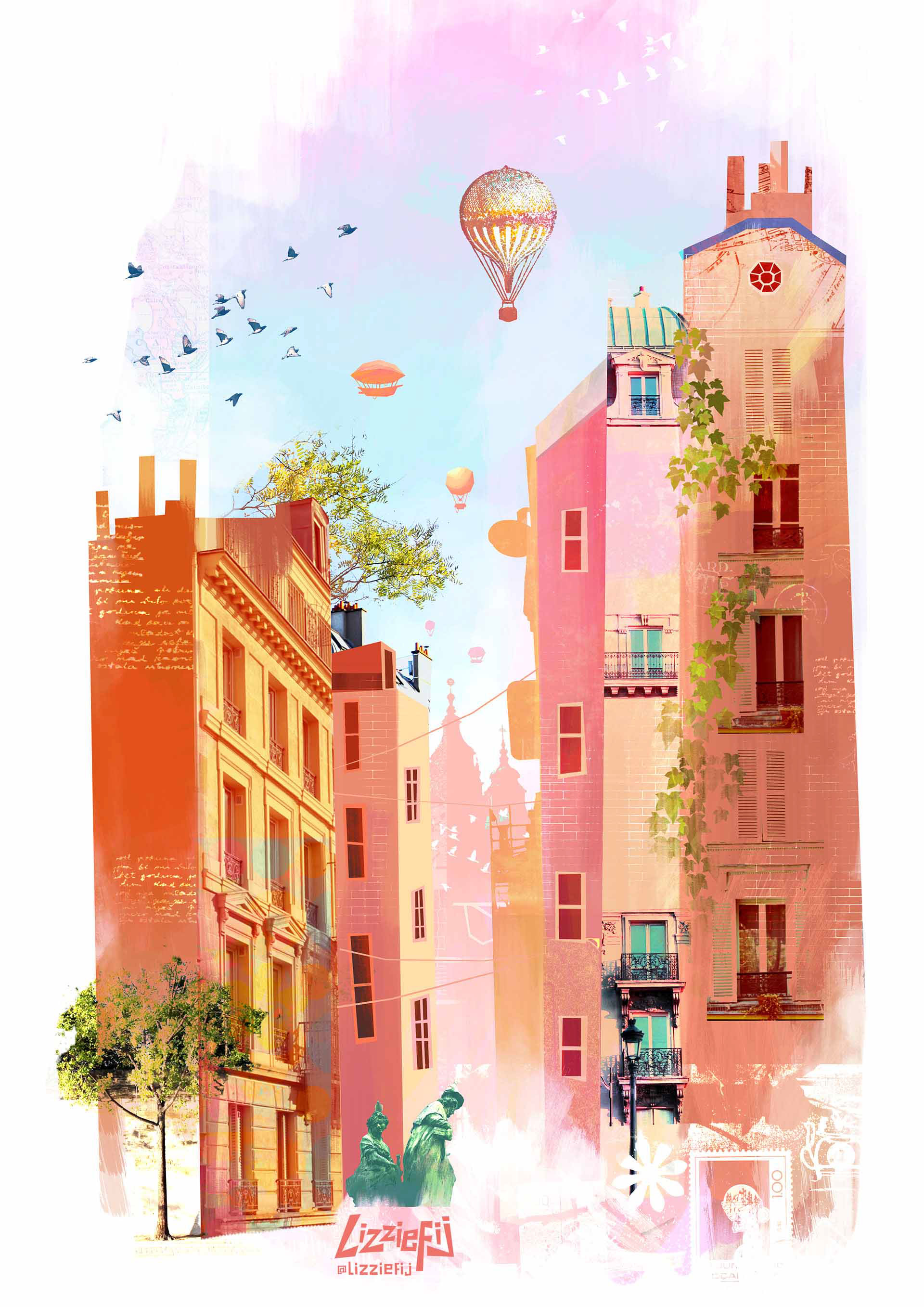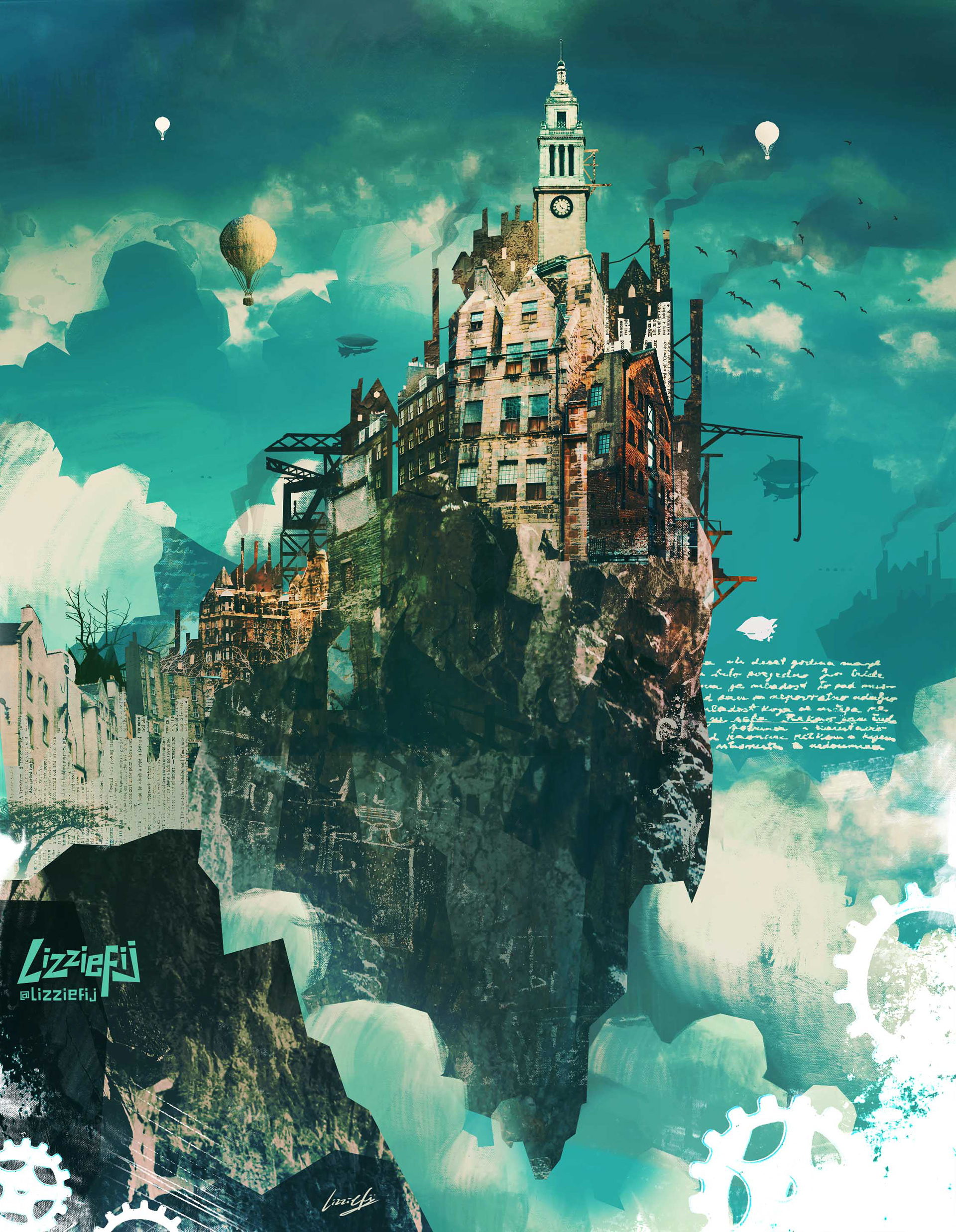 2021 - present | Illustrations and concepts depicting scenes from a possible novel series in progress. The story revolves around Hesper: a young girl with an insatiable curiosity and drive for adventure, which takes her on a wild journey of discovery across a steampunk world of floating sky islands. Created in photoshop with mixed media digital painting & photo collage.