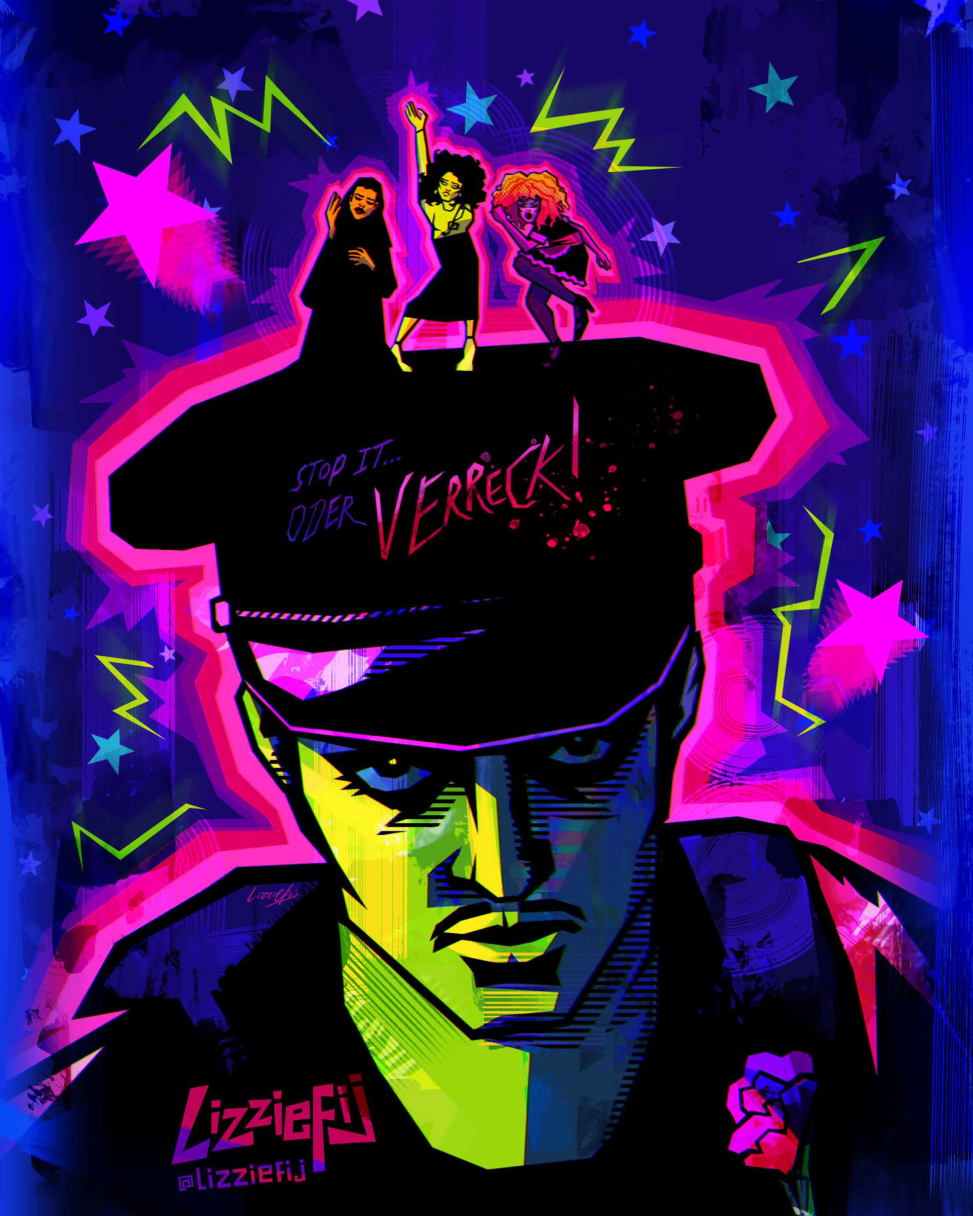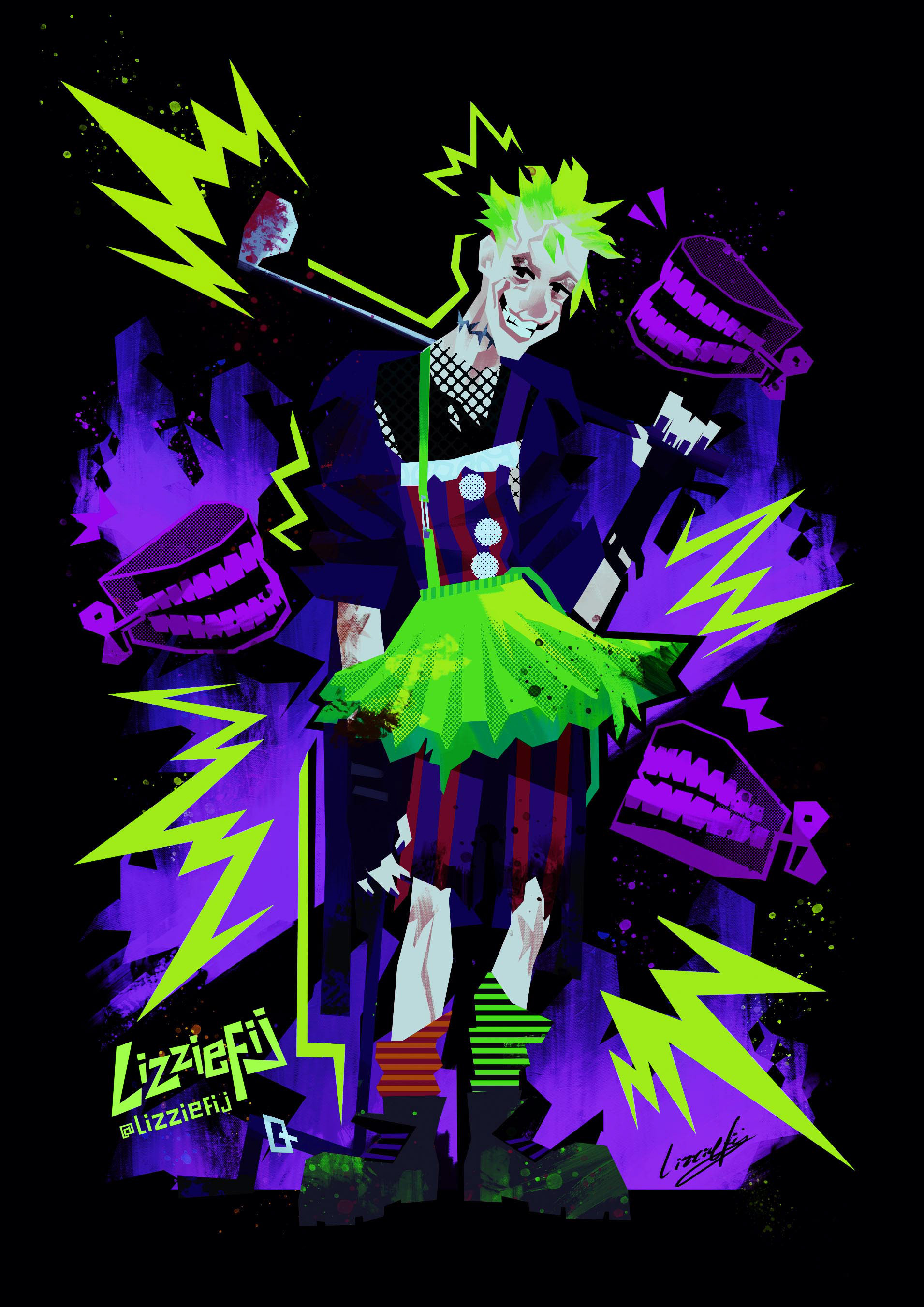 2021 - present | Detailed digital paintings created as tributes to musicians and characters, and my love of eye-melting colour palettes. Digital illustrations made in Photoshop. Portraits are of: Spider-Punk, Look Mum No Computer, Nina Hagen, The Joker (personal redesign), The Ghostbusters.